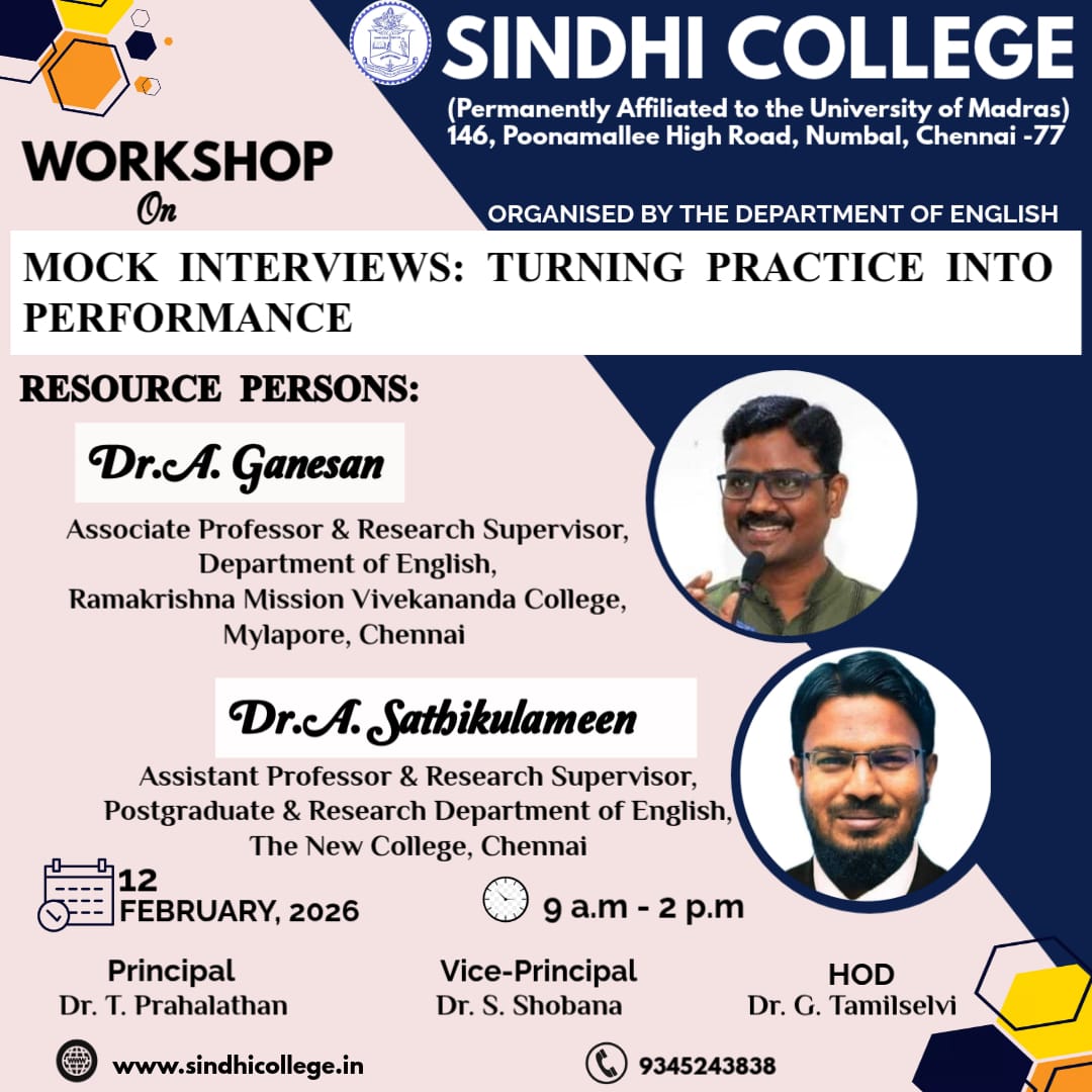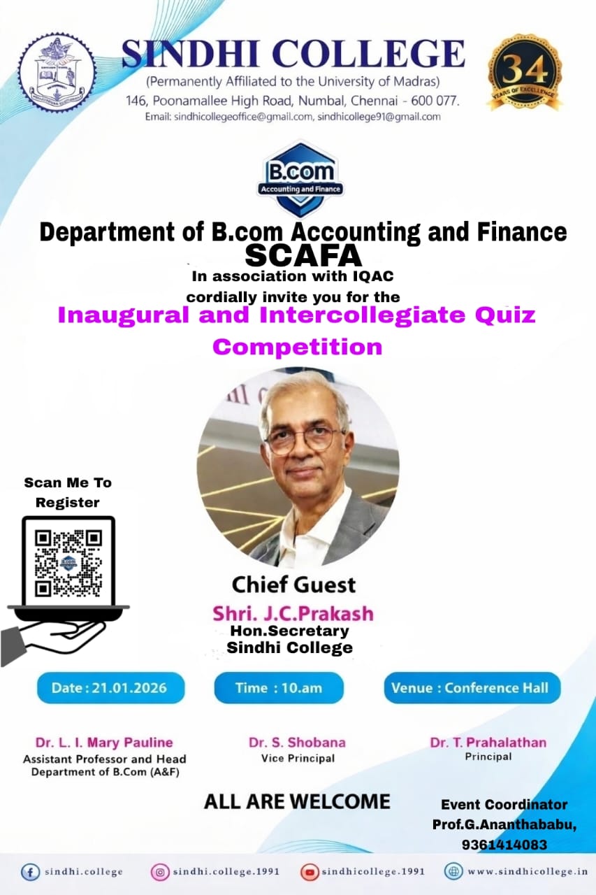 It was my immense luck and fortune to be the part of Sindhi College, Chennai where I can grow. The entire faculty and department leaves no stone unturned to shape one's future.